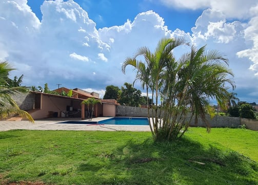 Espaço amplo com área verde, salão, piscina e área gourmet. Perfeito para eventos corporativos e festas de aniversário!