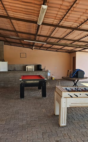 Espaço amplo com área verde, salão, piscina, área gourmet para festas de aniversários, eventos corporativos e final de semana em família.